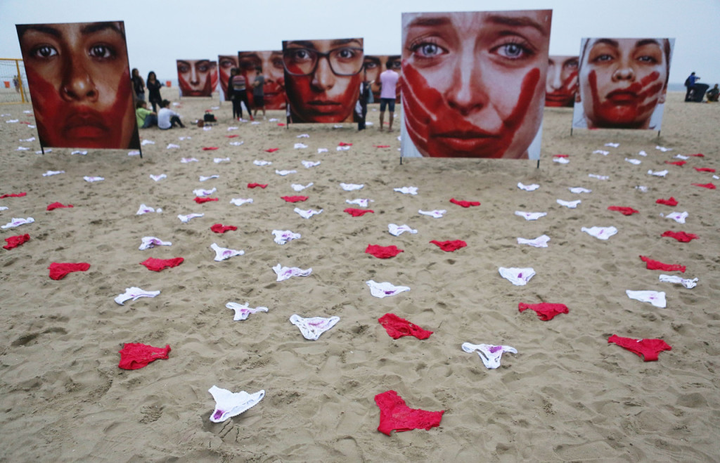 W zeszły poniedziałek na brazylijskiej plaży Copacabana w Rio de Janeiro porozrzucano ponad 400 sztuk białej i czerwonej damskiej bielizny w ramach narodowego protestu przeciwko zbiorowemu gwałtowi na 16-letniej dziewczynie, którego nagranie zostało opublikowane na portalach społecznościowych. Inicjatorami akcji byli członkowie organizacji pozarządowej Rio de Paz (port. Rzeka Pokoju). Jak tłumaczą przedstawiciele Rio de Paz, na plaży rozłożono dokładnie 420 sztuk bielizny, bo tyle właśnie kobiet zostaje zgwałconych w Brazylii w ciągu 72 godzin. W skali rocznej liczba ofiar gwałtu wynosi 50 000. Na plaży oprócz bielizny pojawiło się także 20 wielkich plakatów, przedstawiających zdjęcia przerażonych kobiet z krwawym odciskiem dłoni zakrywającym ich usta. Fotografie pochodzą z wystawy „I will never be silenced” (ang. Nigdy mnie nie uciszycie), autorstwa Marco Freitas.