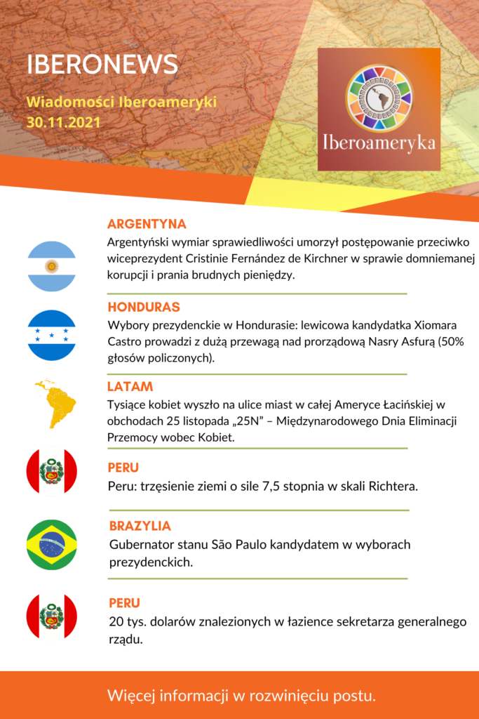 W piątek 26 listopada wymiar sprawiedliwości w Argentynie umorzył postępowanie przeciwko wiceprezydent Cristinie Fernández de Kirchner i dwójce jej dzieci, Máximowi i Florencii Kirchner, w dwóch sprawach: korupcji i prania brudnych pieniędzy. Sprawy te miały być rzekomymi interesami rodziny Kirchnerów prowadzonymi w okresie ich władzy (2003-2015) przy udziale dwóch firm rodzinnych „Hotesur” i „Los Sauces”.