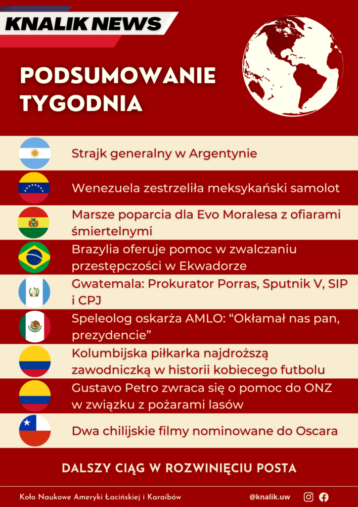 Kolejny tydzień i kolejne podsumowanie tygodnia, a w nim między innymi strajk generalny w Argentynie czy chilijskie nominacje do Oscara. Zapraszamy do lektury!