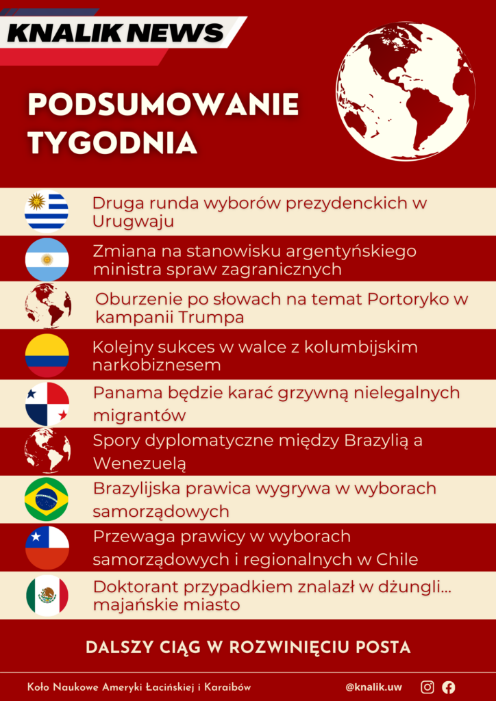W pierwszy weekend listopada piszemy m.in. o rezultatach pierwszej tury wyborów w Urugwaju, odnalezionym majańskim mieście czy o wstrząsających słowach na temat Latynosów, które padły na kampanii Trumpa. Zapraszamy do lektury!