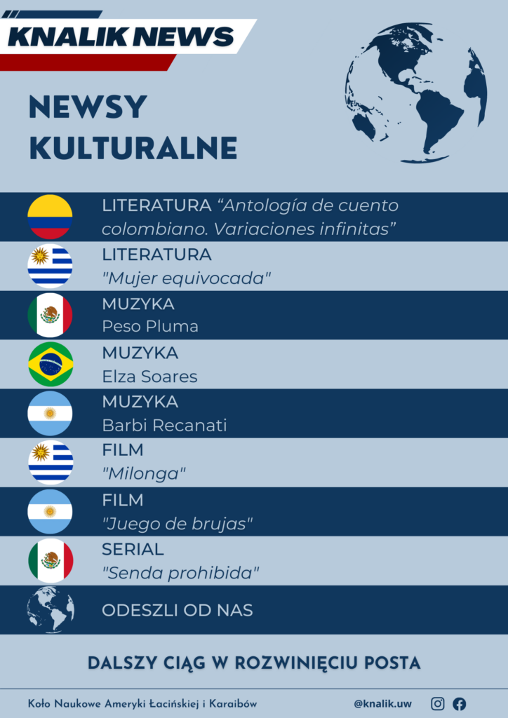 Newsy kulturalne zostały zebrane i zredagowane przez Klaudię Dink i Barbarę Midziak z Koła Naukowego Ameryki Łacińskiej i Karaibów UW.