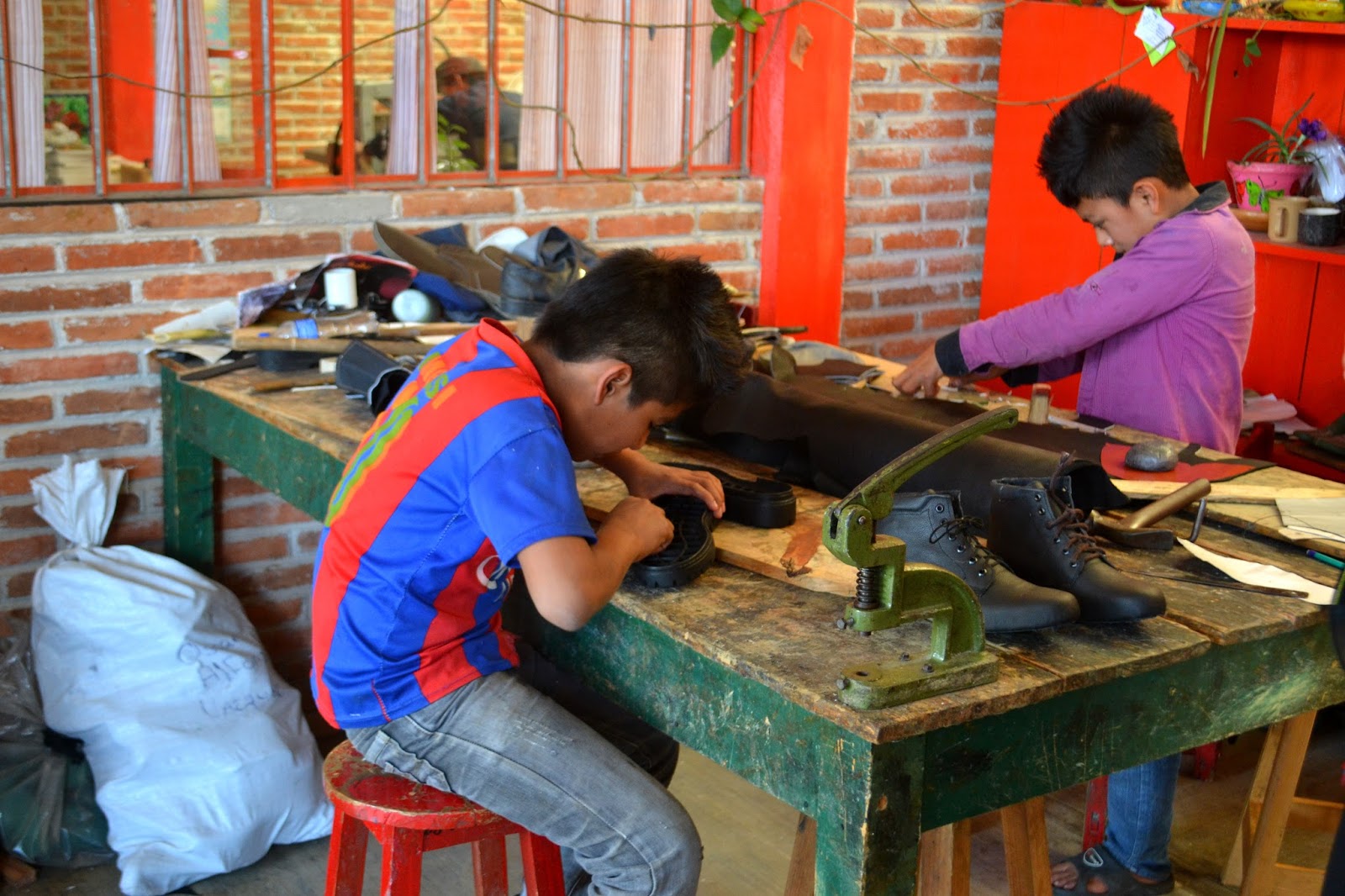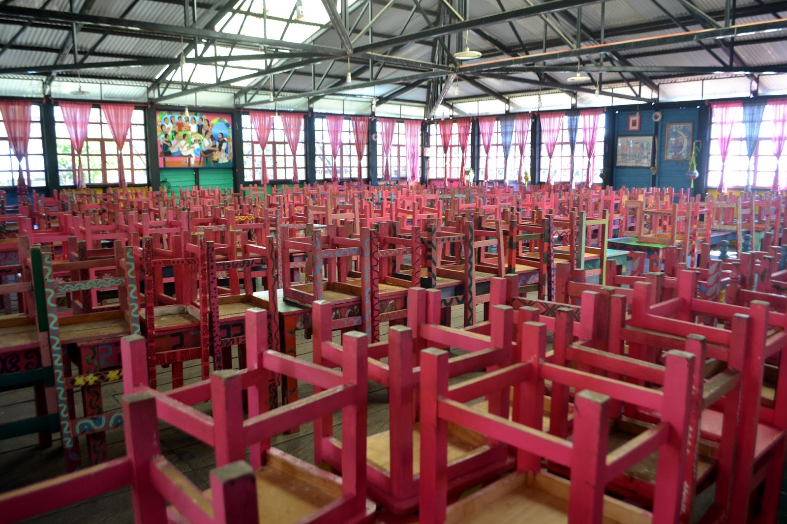 – Tutaj zdobywamy podstawową wiedzę na tematy medyczne, tam wyżej hoduje się zioła lecznicze – Santiago pokazuje nam kolejne budynki uczelni. Wchodzimy do warsztatu tkackiego z wielkimi, drewnianymi krosnami, do sali z maszynami do szycia Singera, do pokoju z warsztatami pisania na maszynie oraz do minisalonu fryzjerskiego. Jest tu też budynek przeznaczony do nauki gry na instrumentach – osobna sala dla gitar, osobna dla marimby i jeszcze osobna dla pianin. Są też warsztaty elektryczne, radiotechniczne, elektroniczne oraz mechaniczne, gdzie uczy się reperować samochody.
